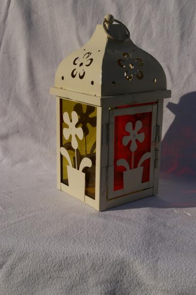 métal blanc pot avec fleur verres de couleurs 10,5x10,5x13,5cm y.c.toit + hanse 27,5cm