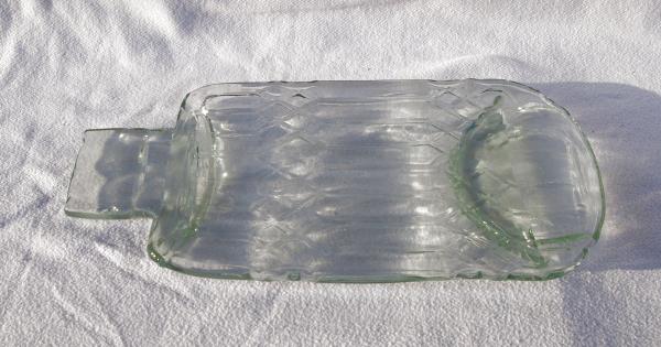 Bouteille fondue transparente avec lignes et losanges Long.27cm larg. 13cm