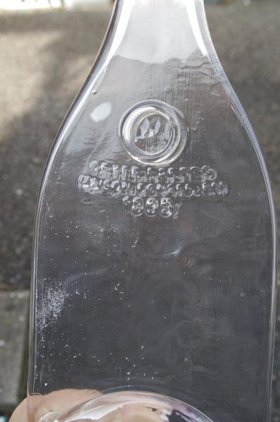Bouteille transparente "Geyger Frères Maison fondée en 1895" L13cm H33cm