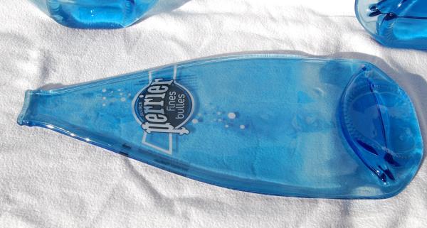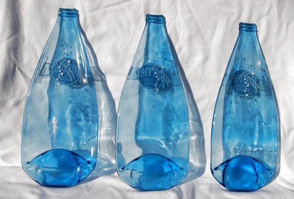 Bouteile Perrier bleu ciel impression sérigraphie bulles L13,5cm H32,5cm