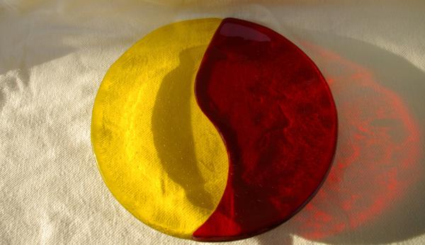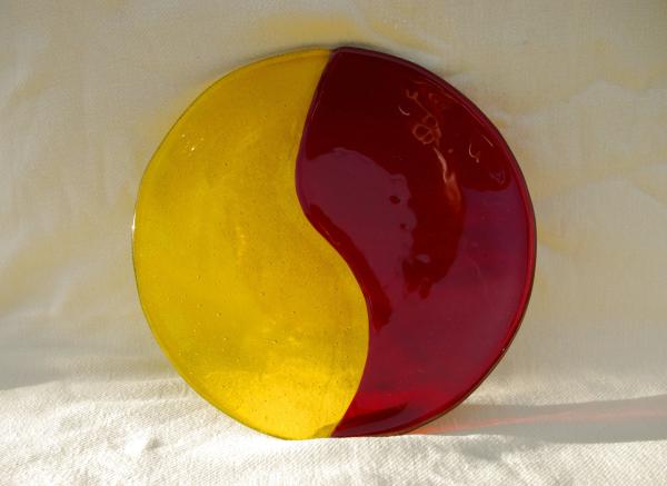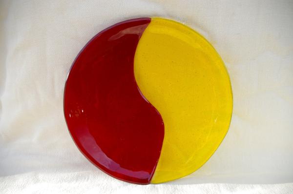 Assiette ronde avec un Yin-Yang rouge et jaune Diamètre: 20cm