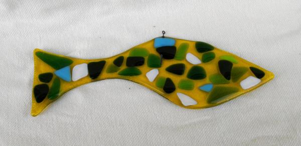 Poisson jaune avec des écailles colorées Dimensions: 21,5 x 7cm