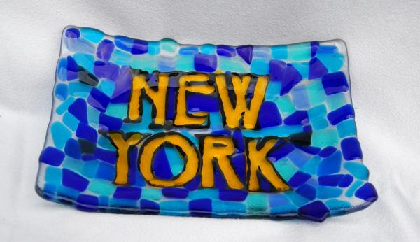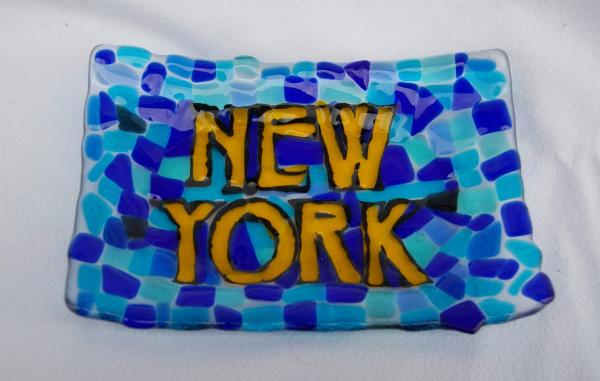 Fusing mosaïque divers bleus, New-York en jaune Dimensions 14 x 20,5 cm