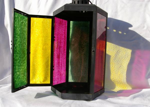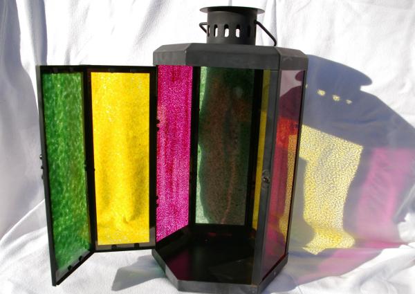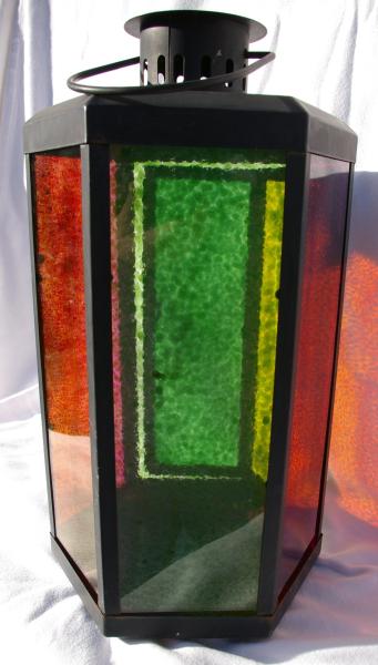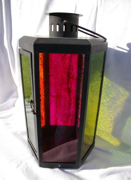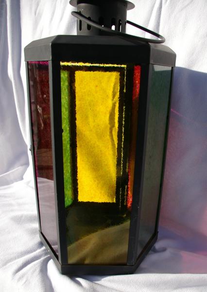 Email jaune, vert, pourpre Dimensions côtés 15 cm hauteur 35 cm + cheminée et hanse 50 cm