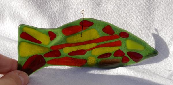 Vert transparent et morceaux rouges et jaunes 15 cm de long