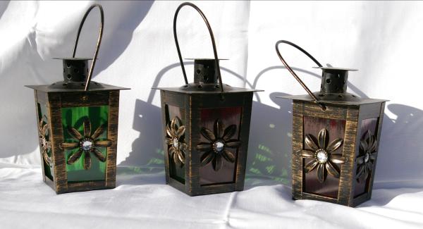 Métallique imitation bois brun, fleur avec faux diamant émail vert Dimensions bas 5,3 x 5,3 cm haut 6 x 6 cm hauteur 9 cm
