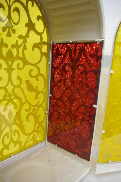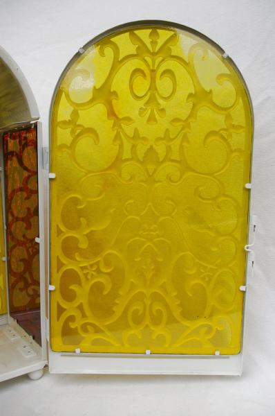 Verres émail jaune et rouge antique 15 x 22 x 42 cm + cheminée et boucle 56,5 cm
