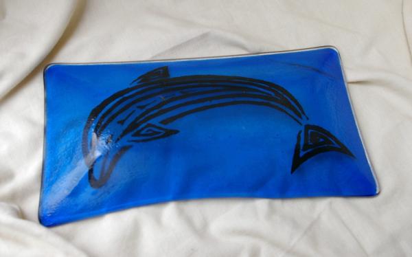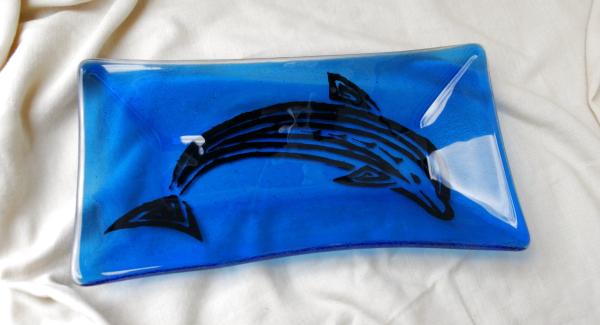 Fusing bleu foncé avec dauphin peint en noir 12,5 x 23 cm
