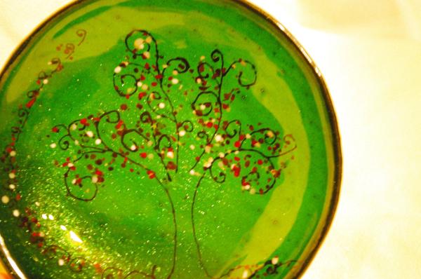 Coupelle vert aventurine arbre peint et frites Ø15,5cm