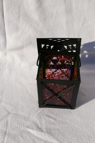 métal noir toit pyramide émail vert et violet frites de verres 6x6x7,5cm