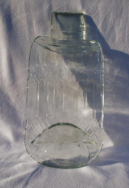 Bouteille fondue transparente avec lignes et losanges Long.27cm larg. 13cm