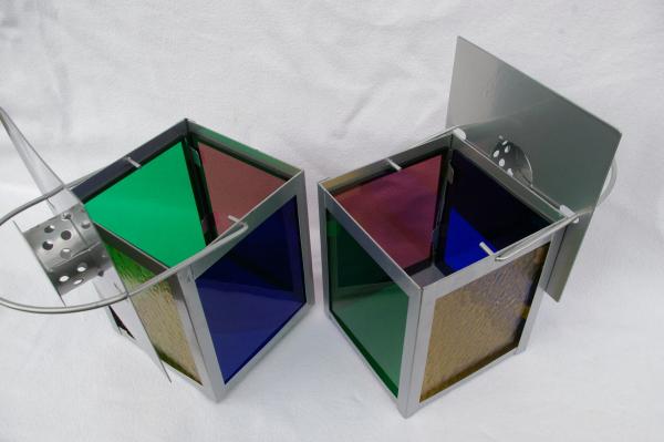 Lanterne alu verres de couleurs (vert-jaune-bleu-violet) 11x11x13,5cm