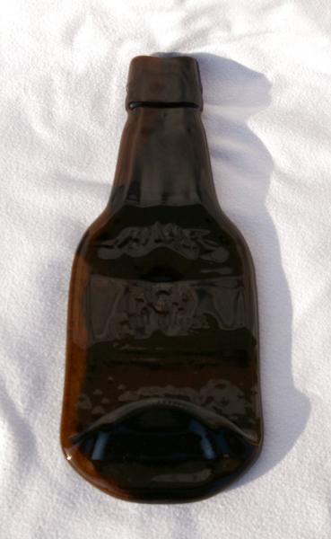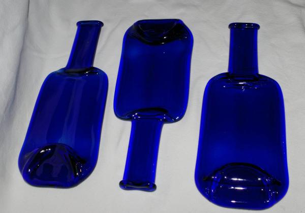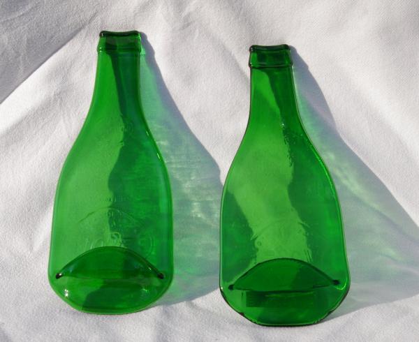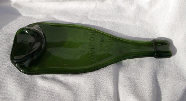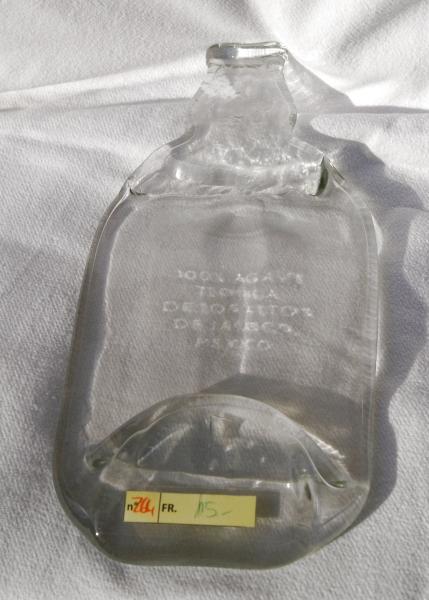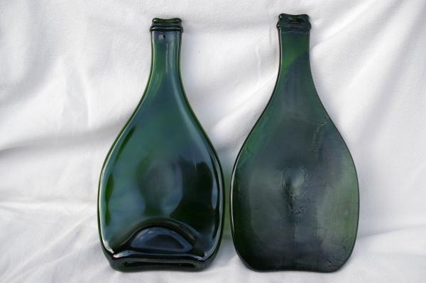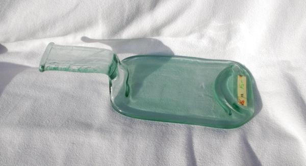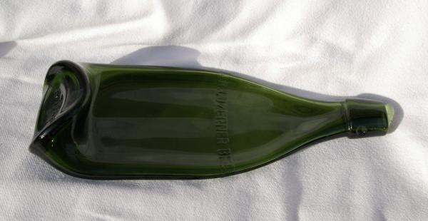 Grande bouteille fondue verte transparente (verre fin) 16x35cm