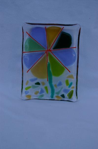 Plat rectangulaire "fusing" fleur stylisée 11,5x15,5cm
