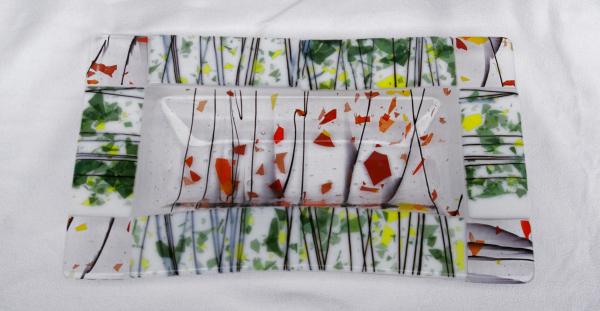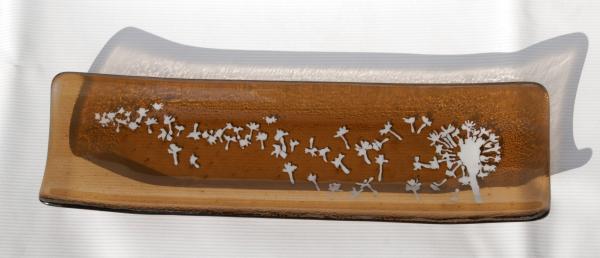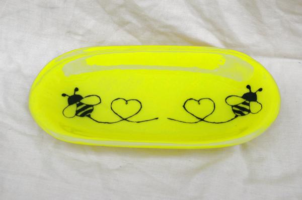 Plat oblong jaune opaque peinture coeurs et abeilles Long. 23cm Larg. 12cm